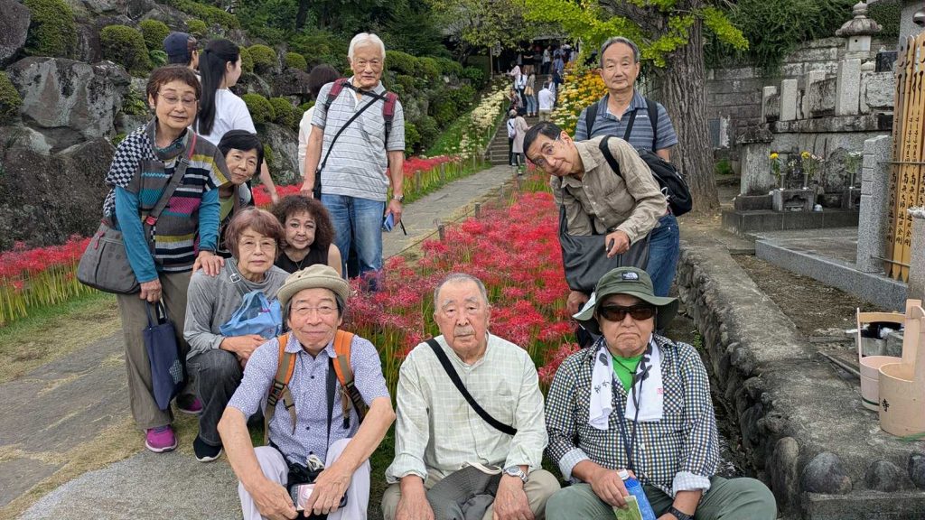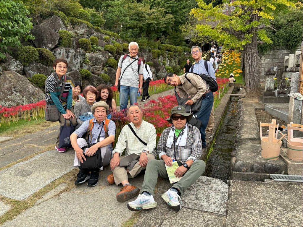10時横浜市営地下鉄新羽(にっぱ)駅に集合。新田緑道を歩き常真寺、せせらぎ緑道を通って北新羽地蔵堂、北新羽杉山神社へ。60段の石段を上ると狛犬の代わりにネズミの石像があり回すとご利益があるとのこと。その後、光明寺で見晴しの良いところで一休み。新新羽神社、西方寺と巡りました。ここは参道に彼岸花などが咲いていて鐘の音も素晴らしく人気の寺でした。