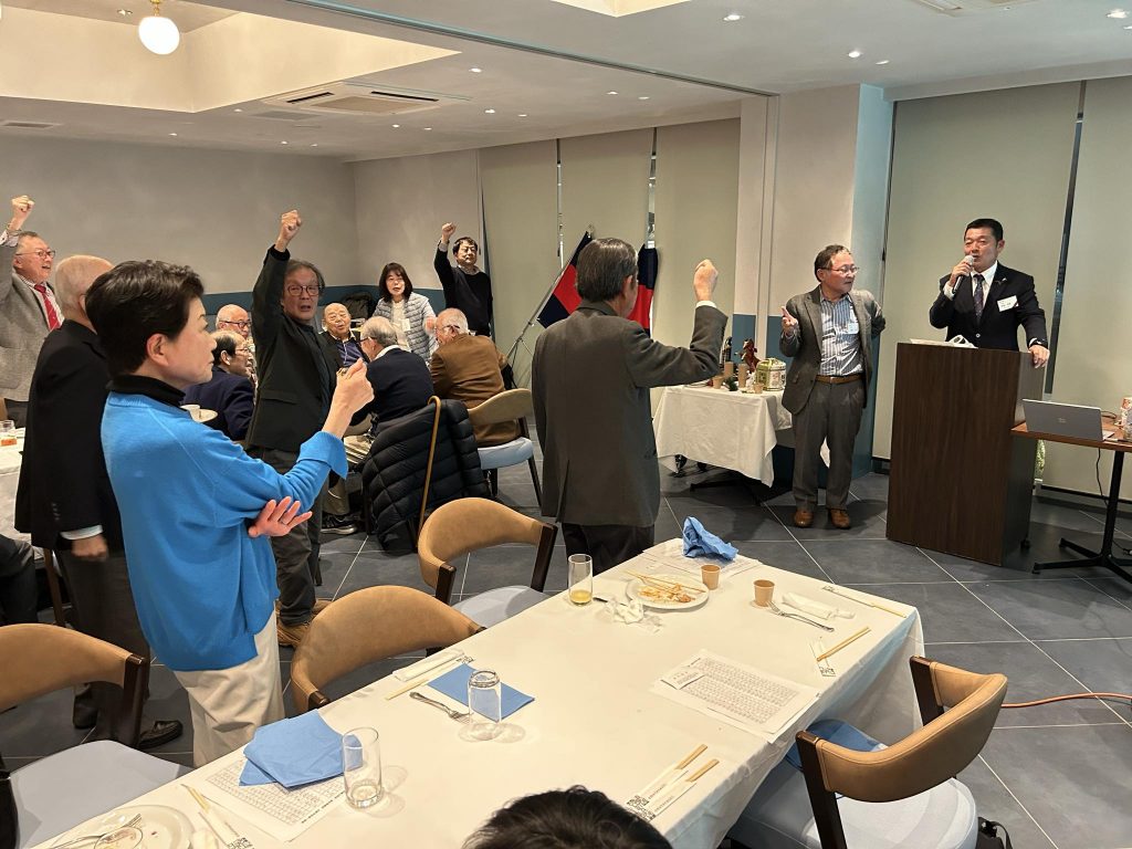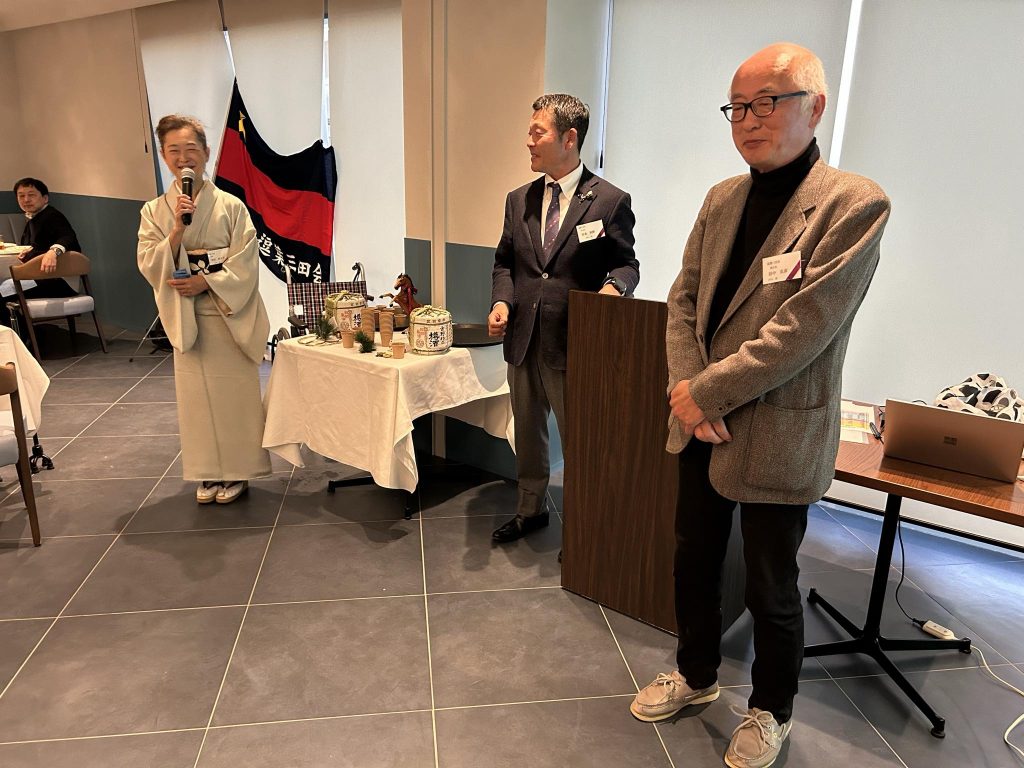 そんなこんなで、予定のお時間となり、閉会のご挨拶と締めは東出副会長。東出さんと言えば一本締めですが、本日は新年ですので景気よく三本締めで威勢よく閉会、お開きとなりました。誠にありがとうございました。(事務局)